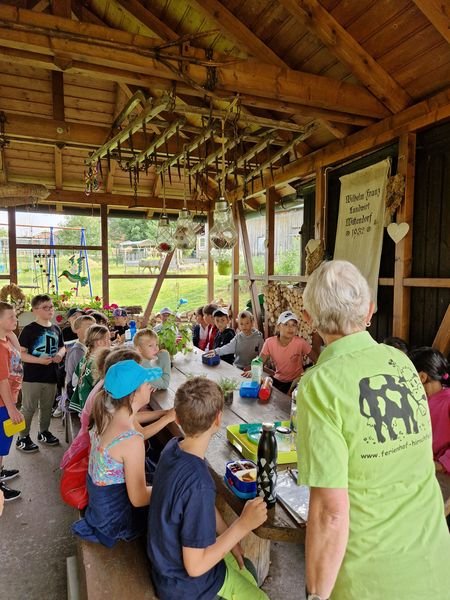 Die zweiten Klassen besuchen in diesem Jahr den Hirschfeldhof in Edelweiler. Neben dem Kennenlernen bauernhoftypischer Arbeiten und zahlreichen Tieren konnten die Kinder auch selbst mit anpacken. Sie konnten sich im Melken üben, beim Tiere füttern helfen und durften mit dem Schaf „Wilma“ spazieren gehen. Der Abschluss bildete ein Rätsel, bei dem das Gelernte gefestigt werden konnte. Danach konnten sich die Kinder auf dem Spielplatz noch austoben.