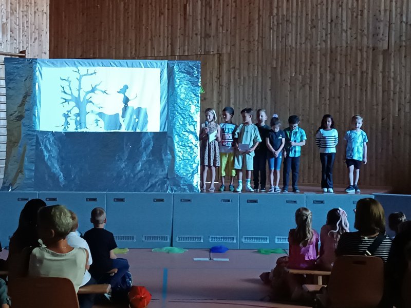 Nach einer herzlichen Begrüßung durch die Schulleiterin Daniela Friedrich präsentierte jeweils eine zweite Klasse kunstvoll die Geschichte von Frederick als