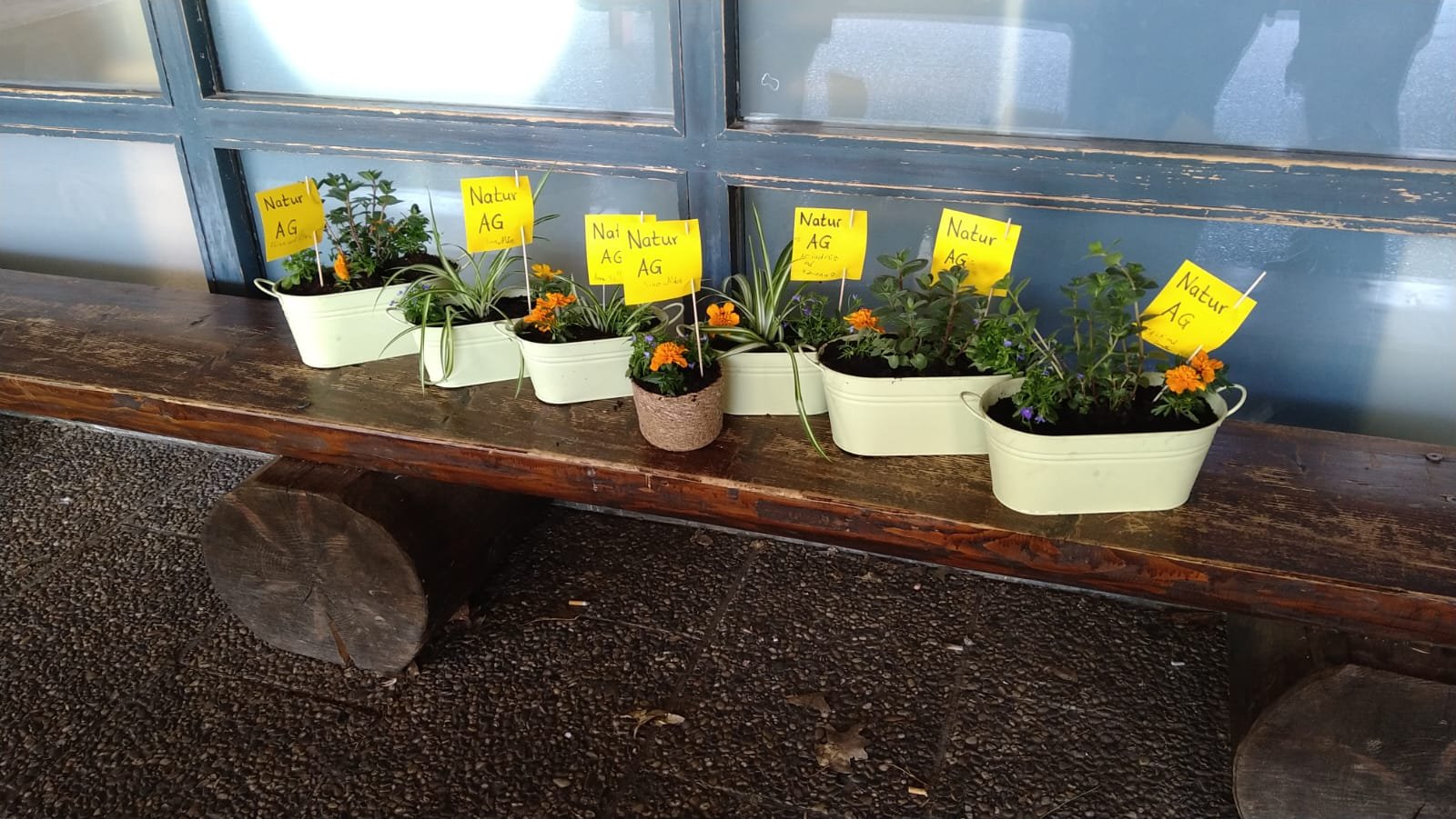 Die Kinder der Natur-AG haben mit ihrer Lehrerin Frau Kistner Blumentöpfe bepflanzt. Ein schöner "Hingucker" im Schulhaus. Vielen Dank!